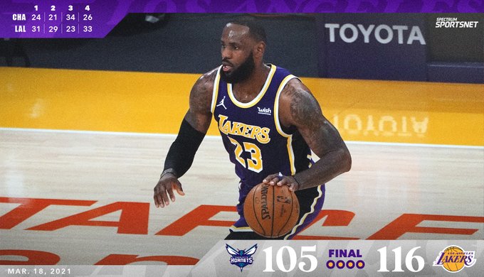 博球00703月19日讯 今天的比赛中,湖人116-105击败黄蜂。 全明星之后,湖人取得4胜0负的战绩。 今日比赛全部结束,湖人以28胜13负的战绩反超太阳,