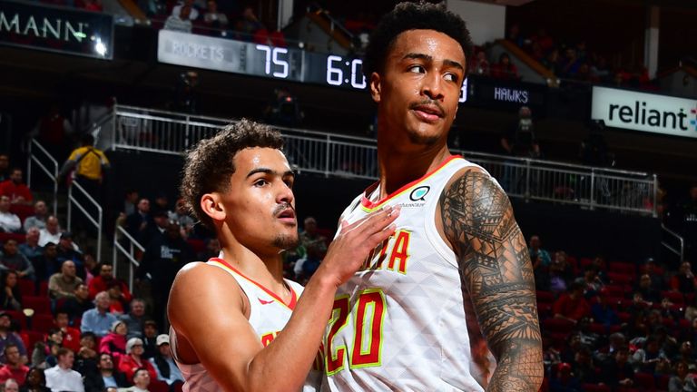 高效演出!特雷-杨和科林斯半场均8中6,合砍30分7板8助