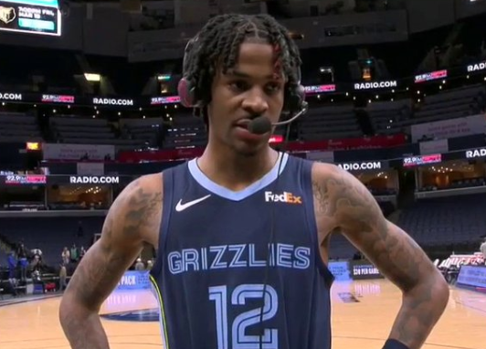 博球00703月18日讯 在今日结束的一场常规赛中,灰熊以89-85击败热火。赛后,灰熊球员贾-莫兰特在场边接受了媒体采访。 谈到最后时刻打进制胜球,莫兰特说: