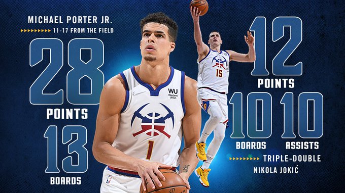 博球00703月18日讯 掘金今天以129-104大胜黄蜂,赛后迈克尔-波特接受了采访。 谈到和尼古拉-约基奇和贾马尔-默里之间的化学反应,波特表示:“当我们用