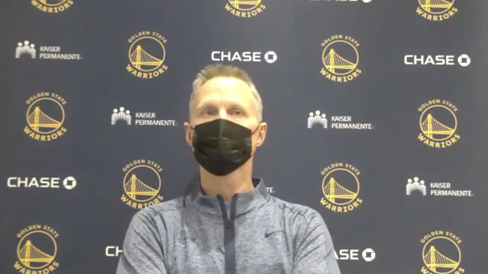 博球00703月18日讯 今天,勇士主帅史蒂夫-科尔接受采访谈到詹姆斯-怀斯曼因新冠防疫规定缺席比赛一事,尤其是考虑到怀斯曼近期出场时间正在上升。科尔表示: “