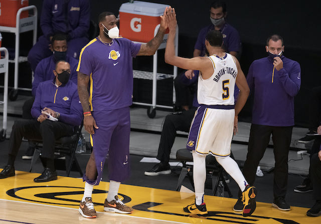 博球00703月17日讯 在今日结束的一场常规赛中,湖人以137-121击败森林狼。赛后,湖人球员塔伦-霍顿-塔克接受了媒体采访。 谈到队友勒布朗-詹姆斯,塔