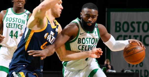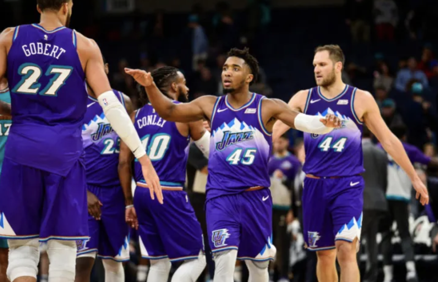 博球00703月17日讯 今日,爵士以117-109击败凯尔特人。 全场比赛,爵士共有6人得分上双。 其中,爵士球员多诺万-米切尔出场33分钟,得到21分2篮板