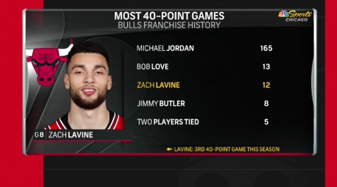 拉文作为公牛球员9次单场40分5三分,队史其他人一共8次