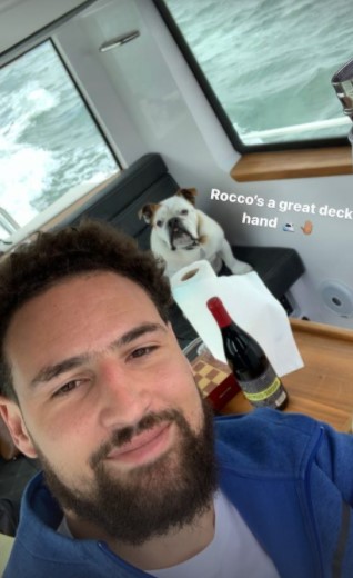 博球00703月17日讯 今日,勇士后卫克莱-汤普森更新了个人Instagram,晒出自己与爱犬Rocco乘船出游的合照。 汤普森写道:“Rocco是一位很棒