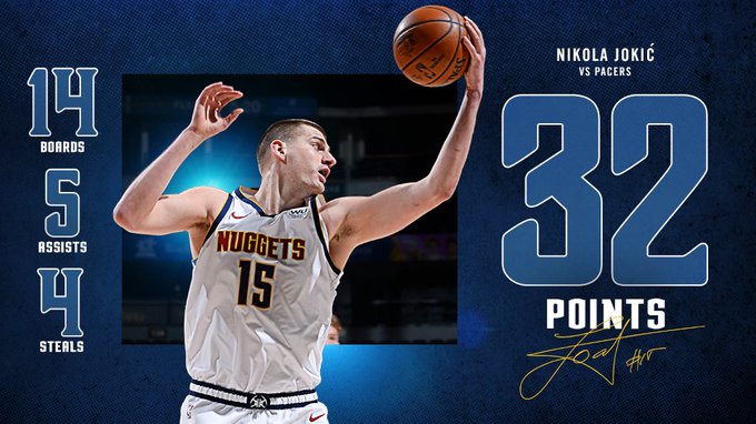 博球00703月16日讯 今日常规赛,掘金以121-106击败步行者,避免连败。 此役,尼古拉-约基奇出战34分钟,25中11,三分4中2,砍下32分14篮板5