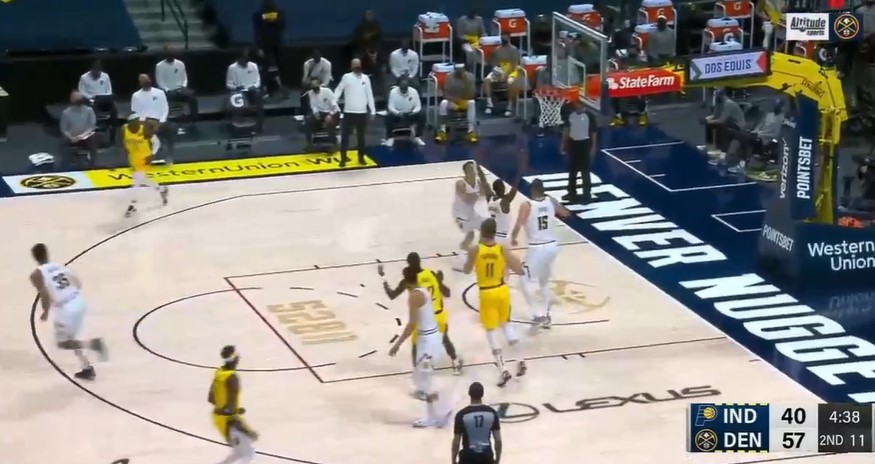 掘金打出一波25-8的小高潮,以57-37领先步行者