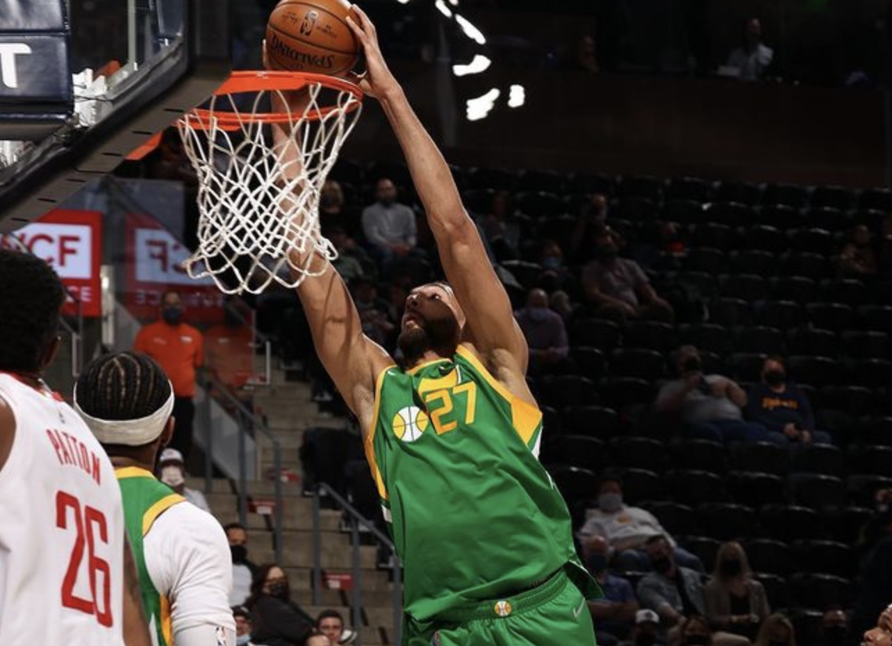 博球00703月14日讯 今日,爵士球员鲁迪-戈贝尔更新Ins,晒出一组自己的赛场照与球迷分享。 目前,爵士以28胜9负的战绩排在西部第一。 本赛季,戈贝尔目前