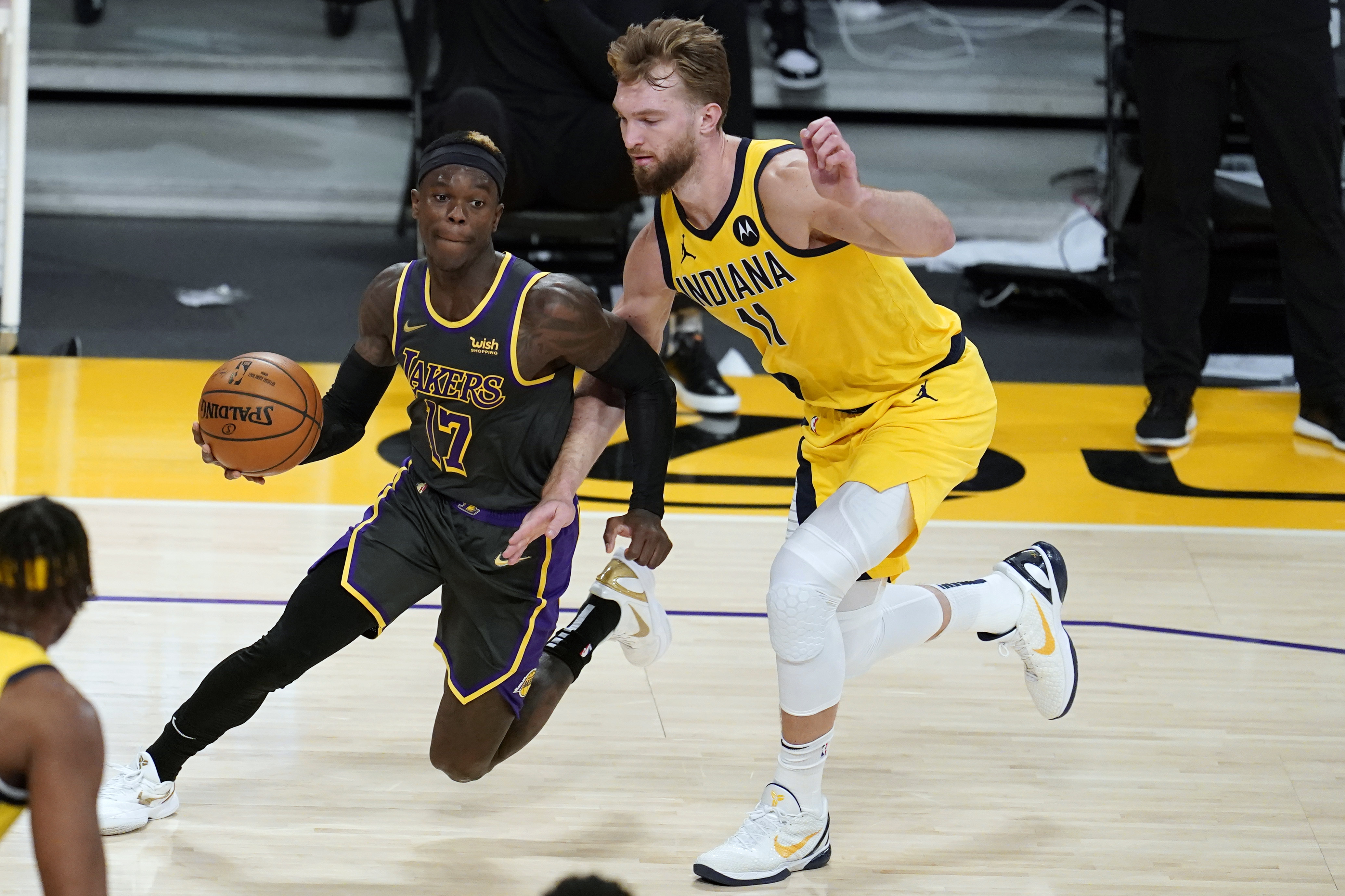 博球00703月14日讯 湖人后卫丹尼斯-施罗德今日训练前接受了采访。 谈到伤缺的队友安东尼-戴维斯在场边的互动,施罗德说:“自从他缺席后,当达米安-琼斯在左翼