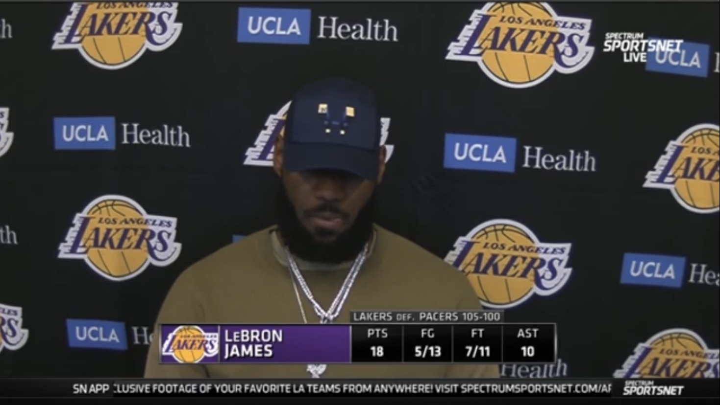 博球00703月13日讯 今日,湖人105-100主场击败步行者。赛后,湖人前锋勒布朗-詹姆斯接受了采访。 “不,我甚至没有注意过我们缺少AD(安东尼-戴维斯)