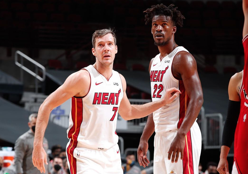 博球00703月13日讯 在今日结束的一场常规赛中,热火以101-90击败公牛。 赛后,热火球员吉米-巴特勒更新Instagram晒出一张与队友戈兰-德拉季奇的