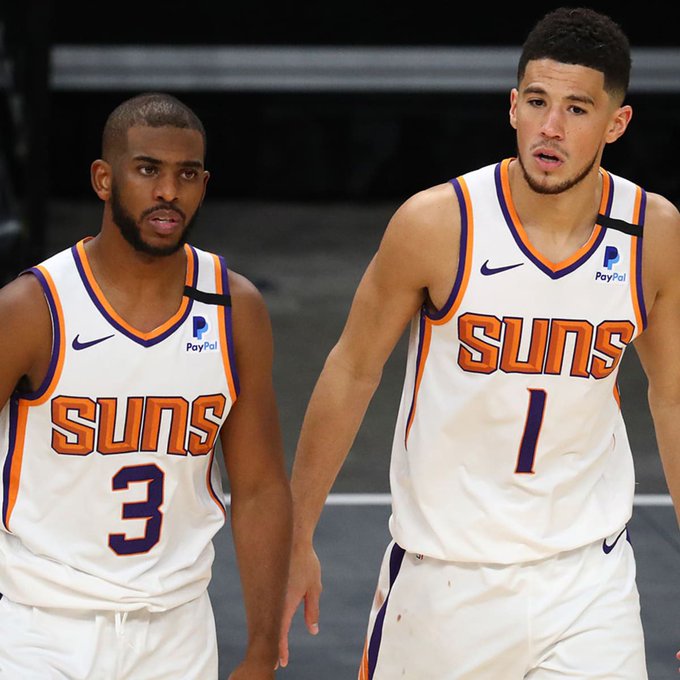 博球00703月12日讯 在今天的比赛中,太阳127-121击败开拓者。 太阳全队7人得分上双,分别是: 德文-布克35分5篮板8助攻。 克里斯-保罗19分5篮