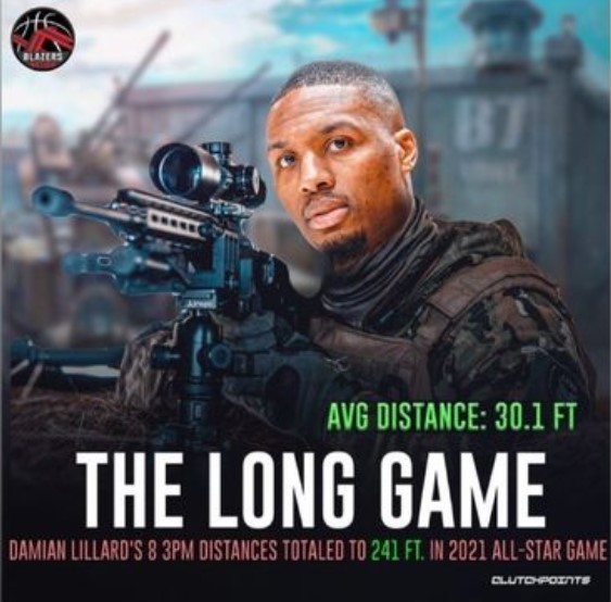 百步穿杨!利拉德昨日命中的8记三分平均距离为9.18米