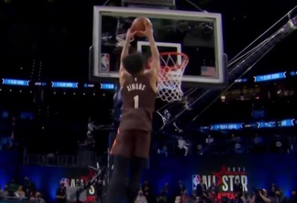 博球00703月09日讯 在昨天的全明星扣篮大赛中,开拓者球员安芬尼-西蒙斯获得扣篮大赛冠军,队友达米安-利拉德接受媒体采访时谈到了他尝试扣篮时亲吻篮筐但失败的