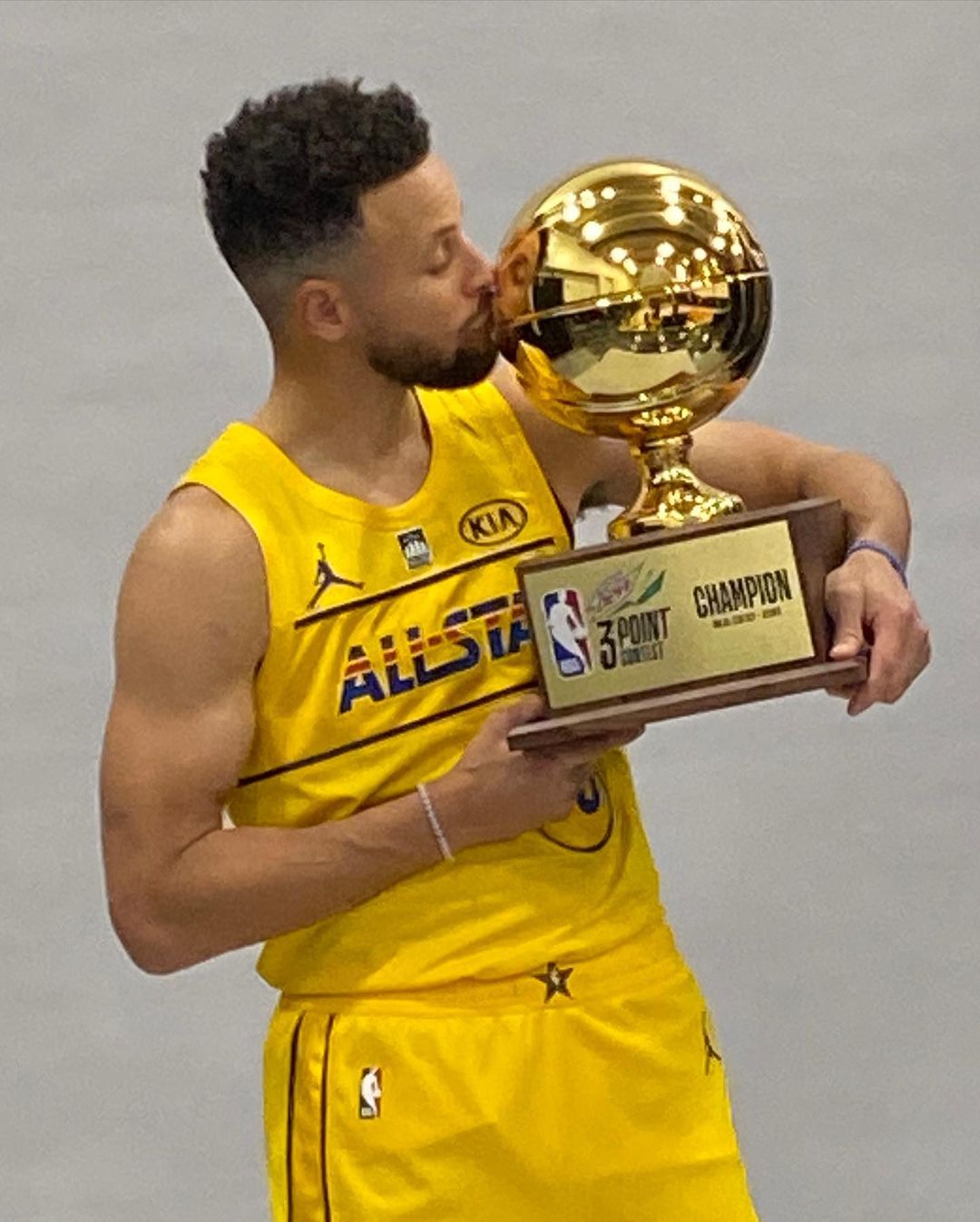库里晒自己三分大赛捧杯画面:@汤普森,把这座奖杯带回去