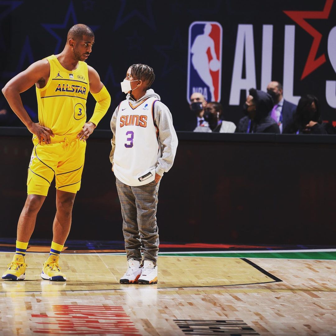 博球00703月08日讯 今日,太阳球员克里斯-保罗的儿子更新了个人Instagram,晒出自己与父亲在全明星赛场上的合照。 保罗儿子写道:“爸爸的第十一次全明