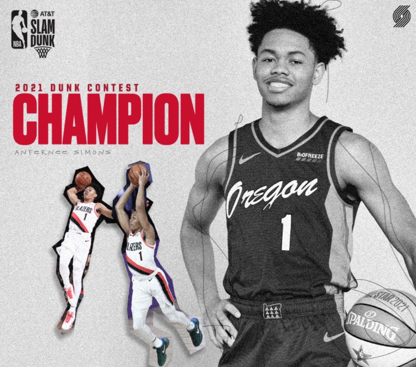 一举成名!开拓者官推祝贺安芬尼-西蒙斯:扣篮大赛冠军!