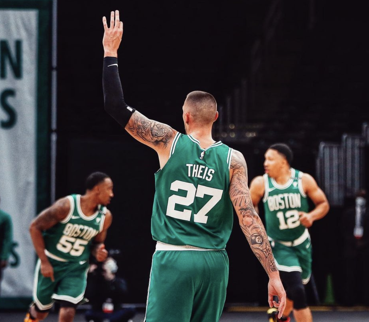 博球00703月04日讯 今日,凯尔特人球员丹尼尔-泰斯更新Ins,晒出一张自己的赛场照与球迷分享。 “连胜中,让我们拿下第四场
