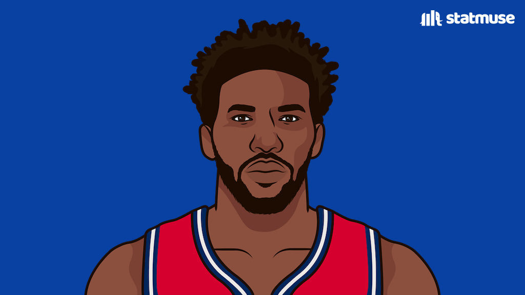 恩比德生涯第9次拿下40+15,1980年之后76人队史最多