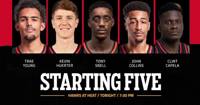 老鹰首发:特雷-杨、赫尔特、斯奈尔、科林斯和卡佩拉