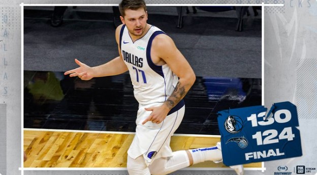 博球00703月02日讯 在今天结束的一场比赛中,独行侠以130-124战胜魔术。 本场比赛,独行侠后卫卢卡-东契奇表现出色,他上场37分钟,22投12中,得