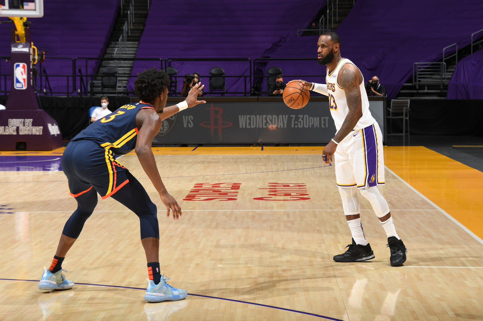 博球00703月01日讯 今日,湖人117-91主场大胜勇士,迎来两连胜。赛后,湖人前锋勒布朗-詹姆斯接受了采访。 谈到在空场比赛环境下打球的难度,詹姆斯说:“