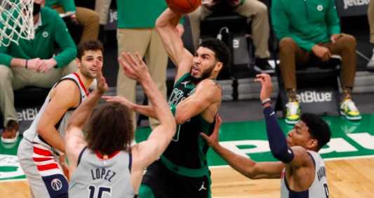 博球00703月01日讯 凯尔特人今天在主场111-110击败奇才,比赛还剩46秒时,凯尔特人还落后5分,不过球队前锋杰森-塔特姆之后连得6分,帮助球队取胜,赛