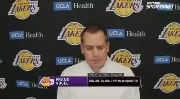 博球00703月01日讯 今天湖人迎来对阵勇士的比赛,赛前湖人主帅弗兰克-沃格尔接受媒体采访。 记者询问沃格尔,他们之前对达米安-利拉德的防守做得很好,今天是