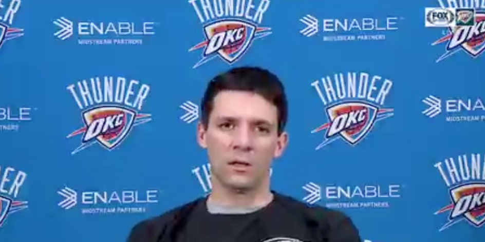 博球00702月28日讯 在今日结束的一场常规赛中,雷霆以96-126不敌掘金。赛后,雷霆球员迈克-穆斯卡拉接受了媒体采访。 谈到球队的表现,穆斯卡拉说:“掘金