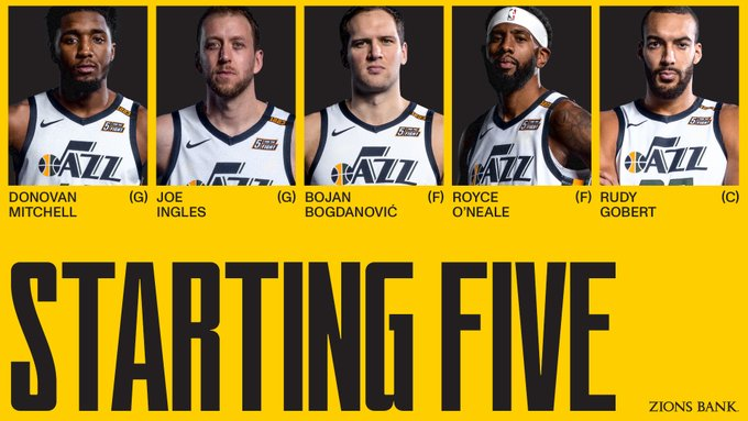 爵士首发:米切尔、英格尔斯、博扬、罗伊斯和戈贝尔
