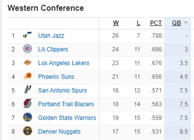 今日勇士赢球开拓者输球后,西部排名567球队胜场差相同