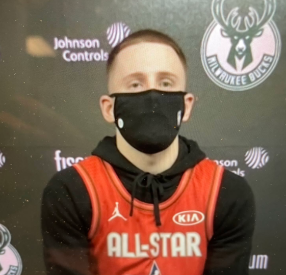 博球00702月26日讯 在今日结束的一场常规赛中,雄鹿以129-125击败鹈鹕。赛后,雄鹿球员唐特-迪温琴佐接受了媒体采访。 迪温琴佐在接受采访时穿着队友克