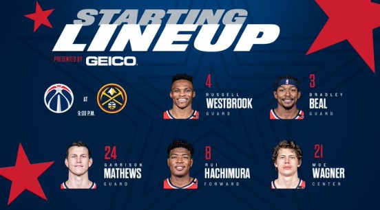奇才首发:威斯布鲁克、比尔、马修斯、八村垒、瓦格纳