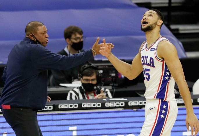 博球00702月26日讯 今天76人迎来对阵独行侠的比赛,赛前76人主帅道格-里弗斯接受媒体采访。 谈到球队后卫本-西蒙斯,里弗斯说道:“他让我想起了杰森-基