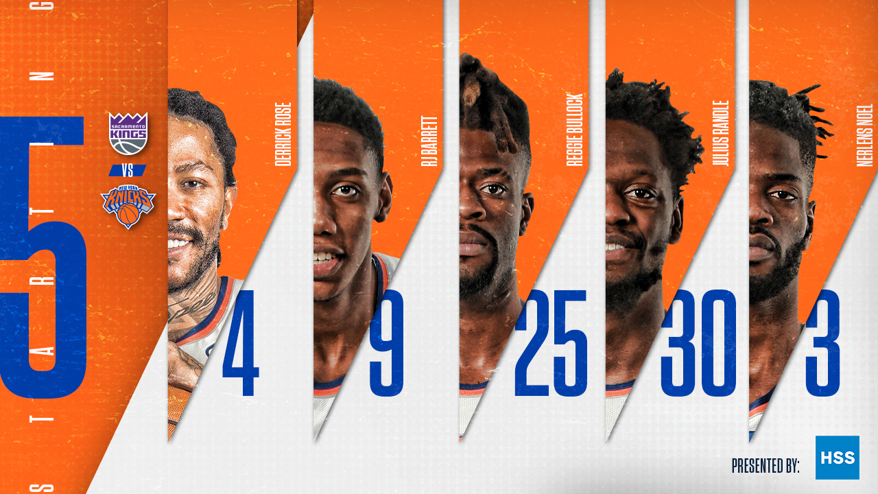 博球00702月26日讯 今天上午八点半,尼克斯对阵国王。赛前,尼克斯公布了本场的首发阵容: 德里克-罗斯 RJ-巴雷特 雷吉-布洛克