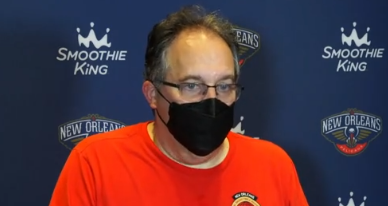 博球00702月25日讯 今天,鹈鹕128-118战胜活塞。赛后,鹈鹕主帅斯坦-范甘迪接受了记者的采访。 谈到球队的进攻表现,范甘迪说:“我有点惊讶,但是