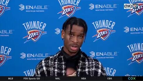 博球00702月25日讯 雷霆在今日比赛中102-99击败马刺。赛后,雷霆球员谢伊-吉尔杰斯-亚历山大接受了采访。 雷霆球员吕冈茨-多尔特命中绝杀三分后,雷霆球