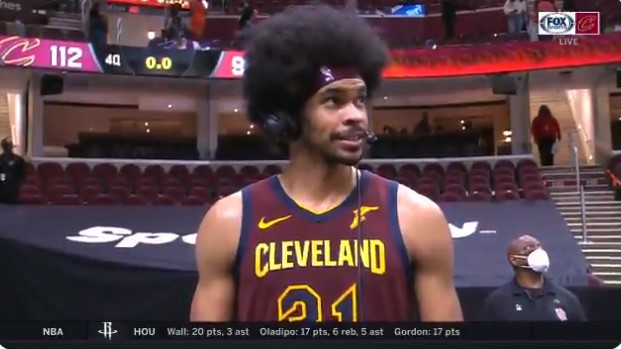 博球00702月25日讯 在今天结束的一场比赛中,骑士以112-96战胜火箭。 赛后,骑士中锋贾勒特-阿伦在场边接受媒体采访。 阿伦首先谈到本场胜利:“我们