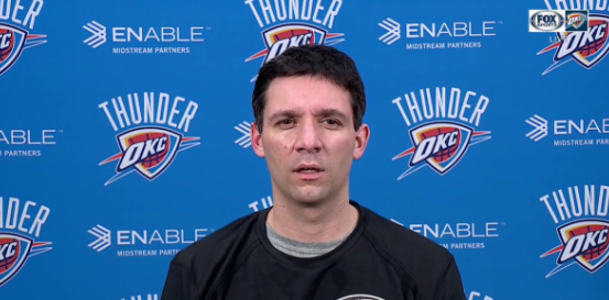 博球00702月25日讯 在今日结束的一场常规赛中,雷霆以102-99击败马刺。赛后,雷霆主教练马克-戴格诺特接受了媒体采访。 谈到球队关键时刻的表现,戴格诺