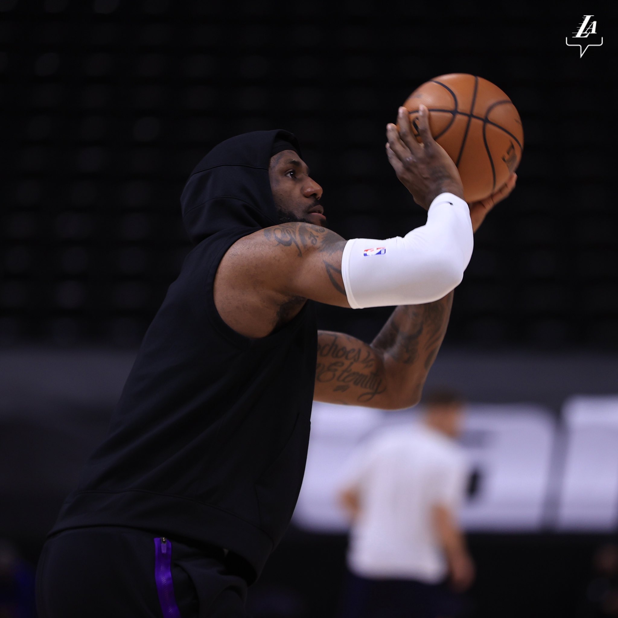 找回手感!湖人官推晒詹姆斯投篮热身照:赛前工作