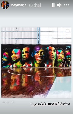 博球00702月24日讯 今日,足球名将内马尔更新个人Instagram,晒出自己家中篮球场的壁画。 内马尔写道:“家中我的偶像!” 德雷蒙德- 格林转发