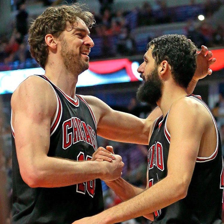 博球00702月24日讯 今日,前NBA球员尼古拉-米罗蒂奇更新Instagram,晒出自己公牛时期与保罗-加索尔德合照,欢迎加索尔加盟巴萨打球。 米罗蒂奇