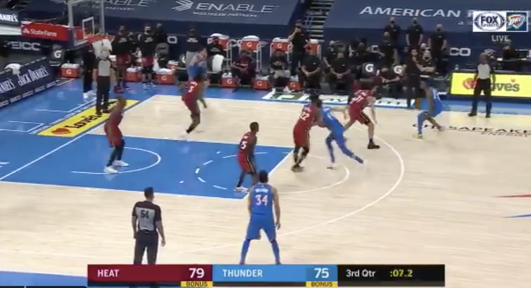 博球00702月23日讯 在今日正在进行的一场NBA常规赛中,热火面对雷霆的挑战,目前双方战至第四节,热火以84-77领先。 本场比赛第三节结束时,雷霆球员谢伊