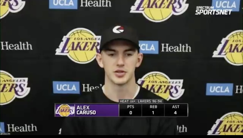 博球00702月21日讯 今日结束的NBA常规赛中,湖人以94-96憾负热火。赛后,湖人后卫亚历克斯-卡鲁索接受了采访。 谈到最后一个比赛回合,卡鲁索说:“我们
