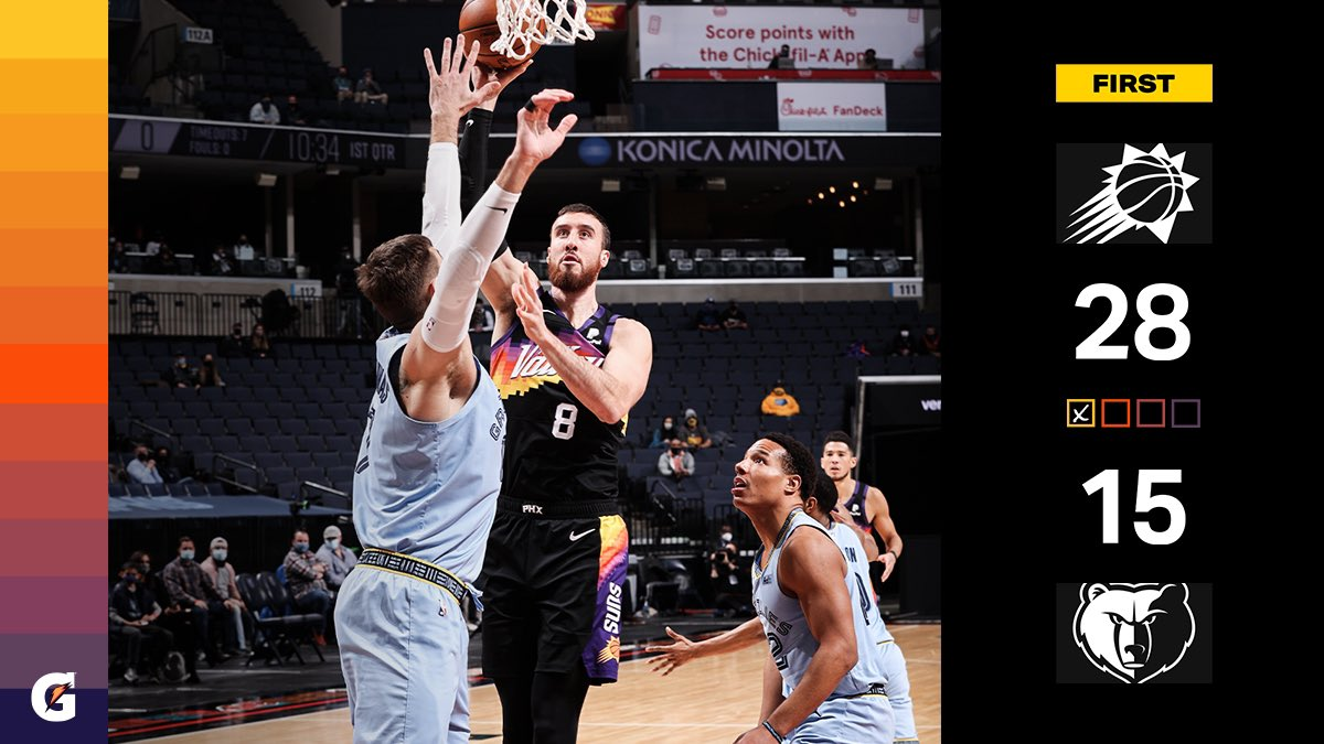 博球00702月21日讯 今天,太阳客场对阵灰熊。首节末,太阳打出了一波19-4的得分高潮,以28-15领先。