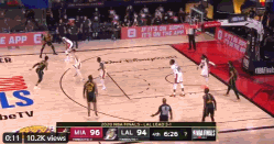 随着湖人后卫肯塔维厄斯-考德威尔-波普命中一记三分球,湖人末节打出一波15-8的攻击波,反超比分。