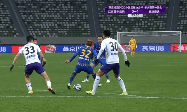 足协杯半决赛在今晚先赛一场,新科中超冠军江苏苏宁苦战90分钟,最终1:1与天津泰达握手言和。一周后,两队将进行第二回合决战,第一个晋级决赛的名额,也将在那时产生。江苏苏宁的外援由于已经提前放假,所以球队只得以全华班征战足协杯。尽管没有外援,江苏队还是展现了不俗的战斗力。今晚的比赛中,他们23岁的本土国脚迎来大爆发,下半场禁区内的一次世界级过人更是技惊四座,让人拍案叫绝!