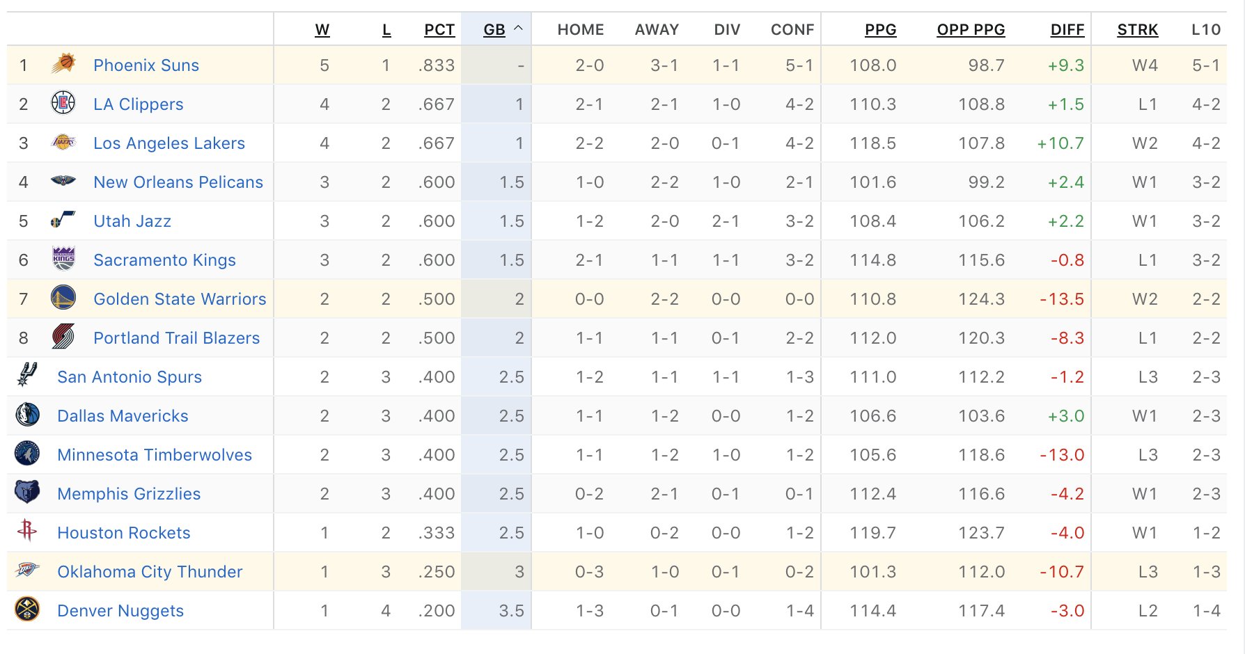 而太阳的战绩来到了5胜1负,战绩排名西部第一。
