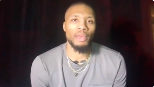 赛后,开拓者后卫达米安-利拉德接受媒体采访。