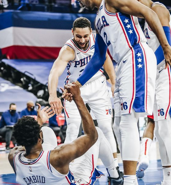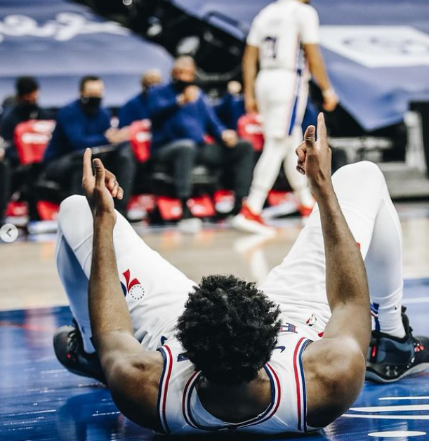赛后,76人球员乔尔-恩比德更新了个人Ins,晒出今日赛场照,并配文:保持前进!!!